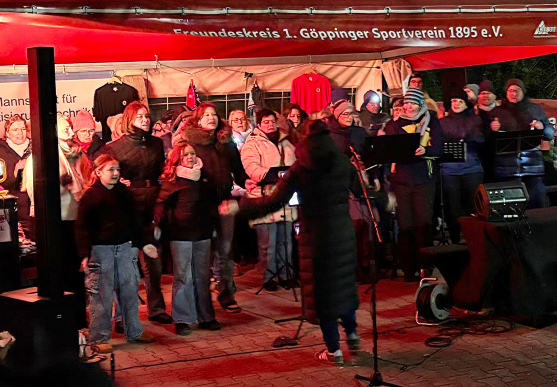 Kalt war`s beim Jahresauftakt des 1.GSV in Göppinger Stadion Hohenstaufenstraße! Aber das war kein Problem, denn eine Abordnung unserer Chöre und des TGV Chores Roßwälden heizten den Feierwilligen unter der Leitung von Katharina Campos Aquino mit unseren Songs kräftig ein! Aber es waren schon alle dick eingemummelt!