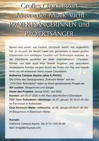 Lust zu singen? Trau dich und probier`s aus, auch wenn du vielleicht noch nicht viel Erfahrung im Singen hast! Im Rahmen der oben genannten Aktion des Deutschen Chorverbandes bieten unsere Chöre am 24.09.2025 öffentliche Schnupperstunden an.